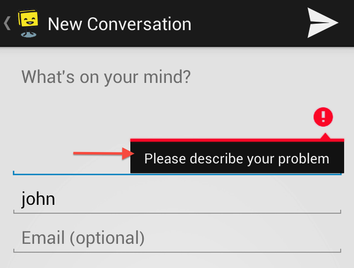hs__conversation_detail_error | Message for AlertDialog if the user leaves the problem description empty. This is a slight attempt to prevent the user from entering gibberish ![]() | Please describe your problem |