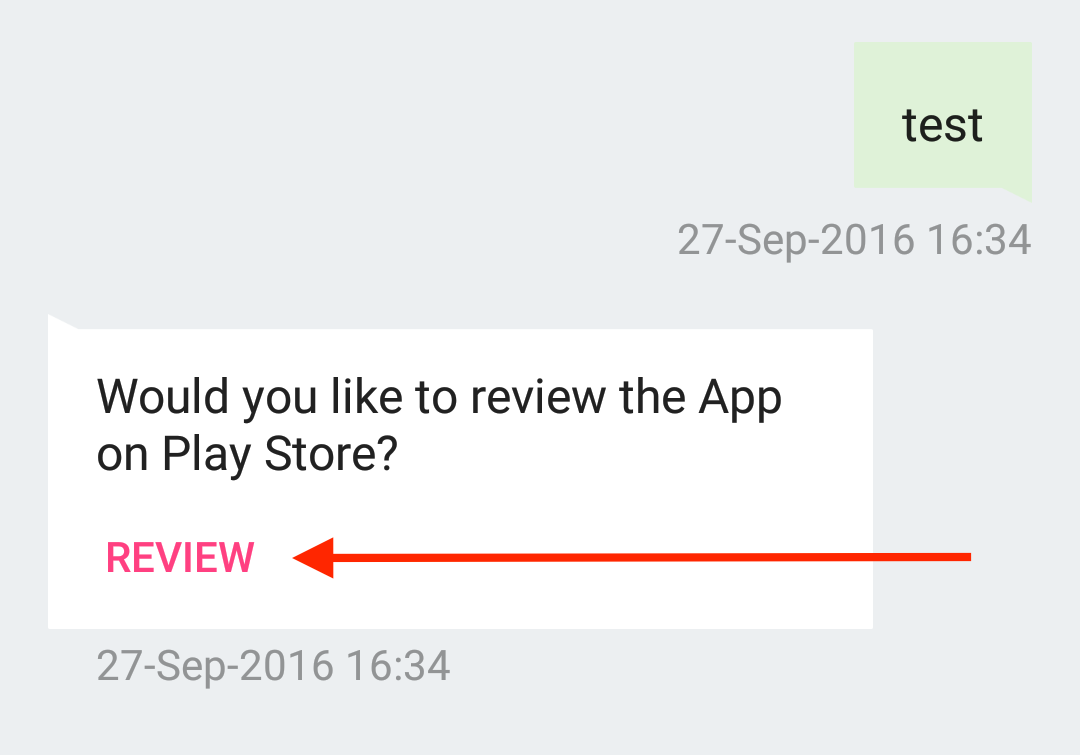 hs__review_request_message | Response message shown in the conversation screen when agent sends a review request from agent dashboard | Would you like to review the App on Play Store? |